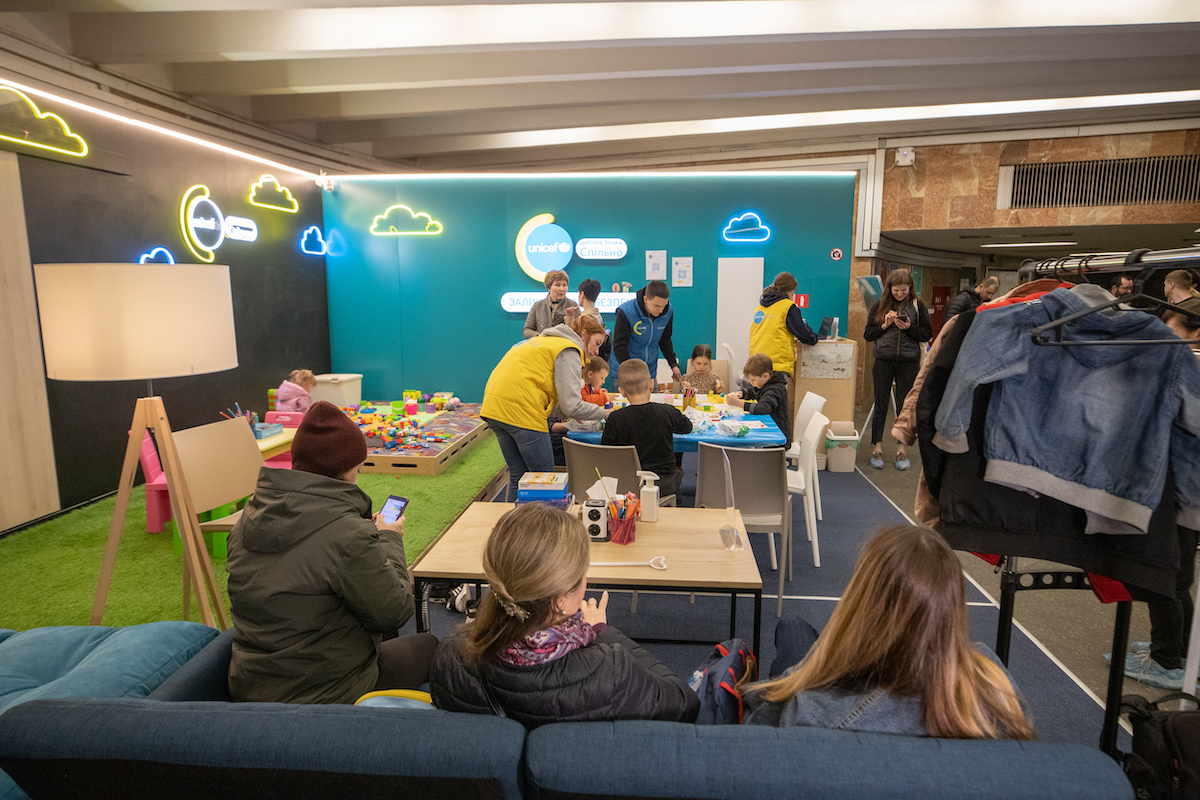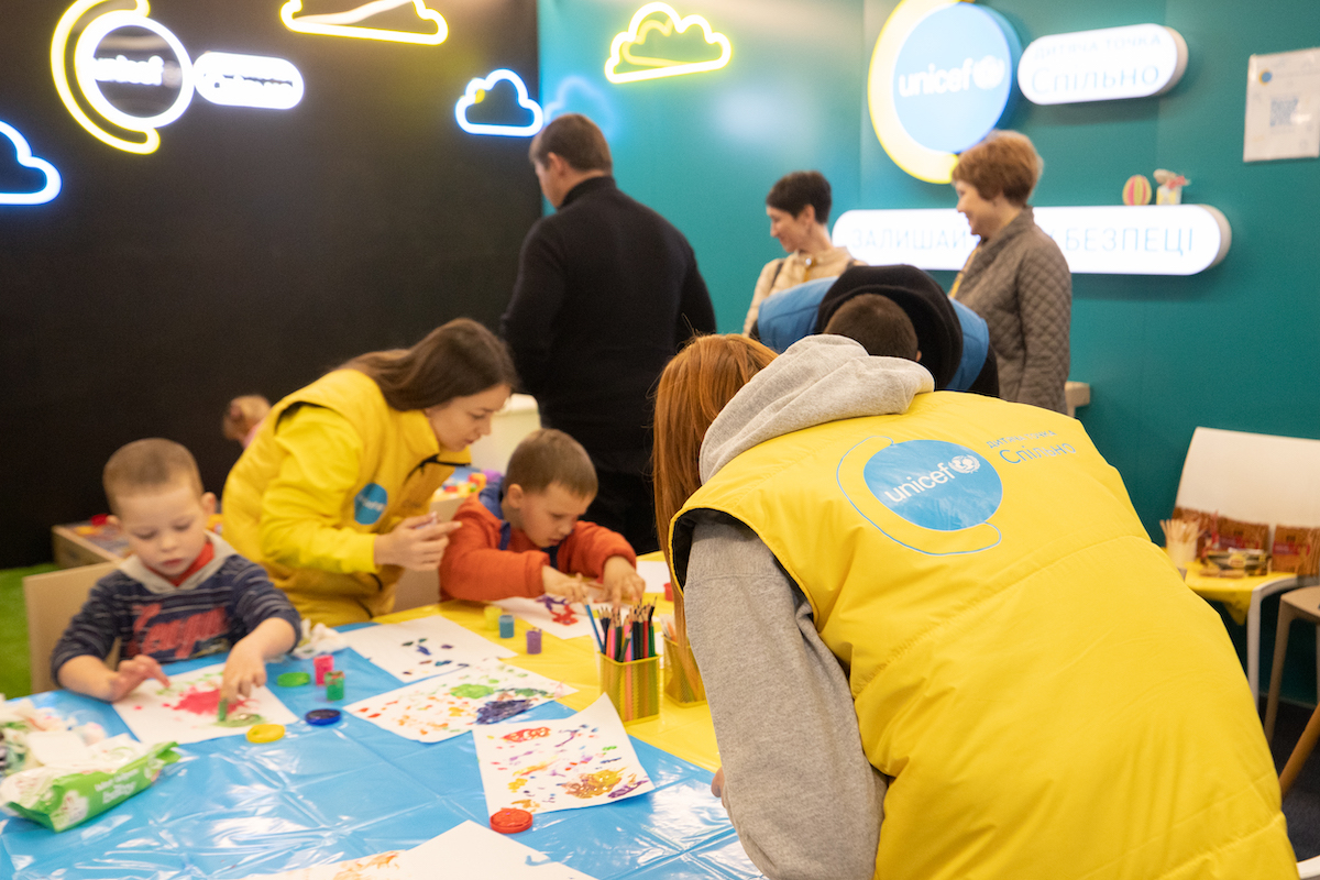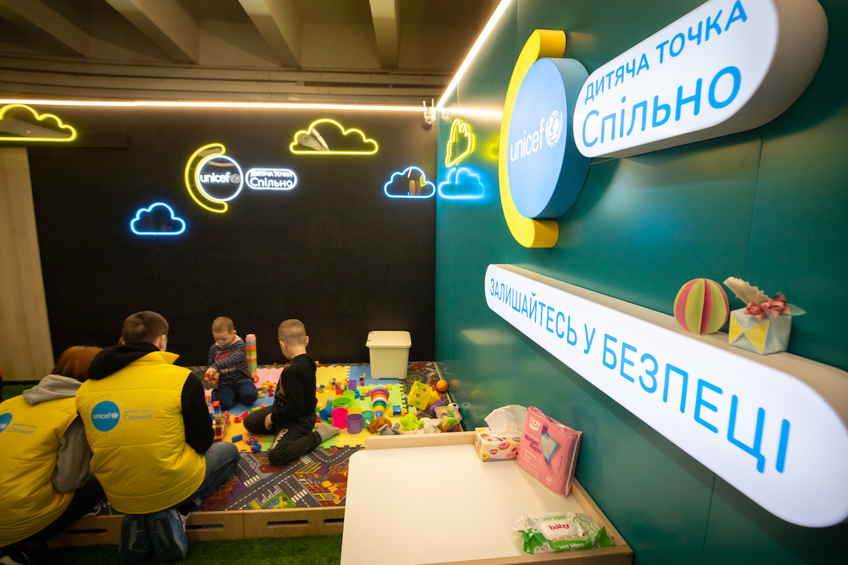 Програму дитячих точок «Спільно» проводить ЮНІСЕФ. За рік відкрили понад 150 таких локацій у різних областях. Такі простори розташовують у наметах, притулках, на залізничних вокзалах, станціях метро.