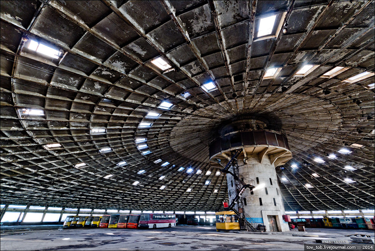 Споруда, побудована у 1973 році, є зразком радянського модернізму та індустріальної архітектури. Кругла будівля має унікальну конструкцію: між стінами та центральною опорою натягнуто 186 тросів, на яких закріплено бетонні плити купола. Отриманий в результаті простір площею приблизно 20 тисяч квадратних метрів дозволяє автобусам вільно маневрувати.