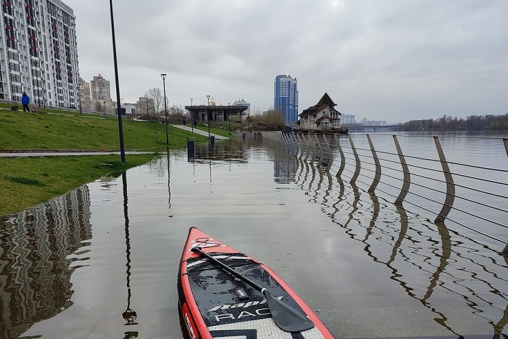 У Києві внаслідок опадів збільшився рівень води у Дніпрі, що спричинило підтоплення окремих територій. У КМДА заявили, що очікувані максимальні рівні паводку не несуть загрози промисловим об’єктам і житловим масивам.