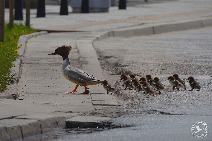 Протягом місяця крехи з пташенятами переміщаються з парку Королівські Лазеньки до річки Вісли.