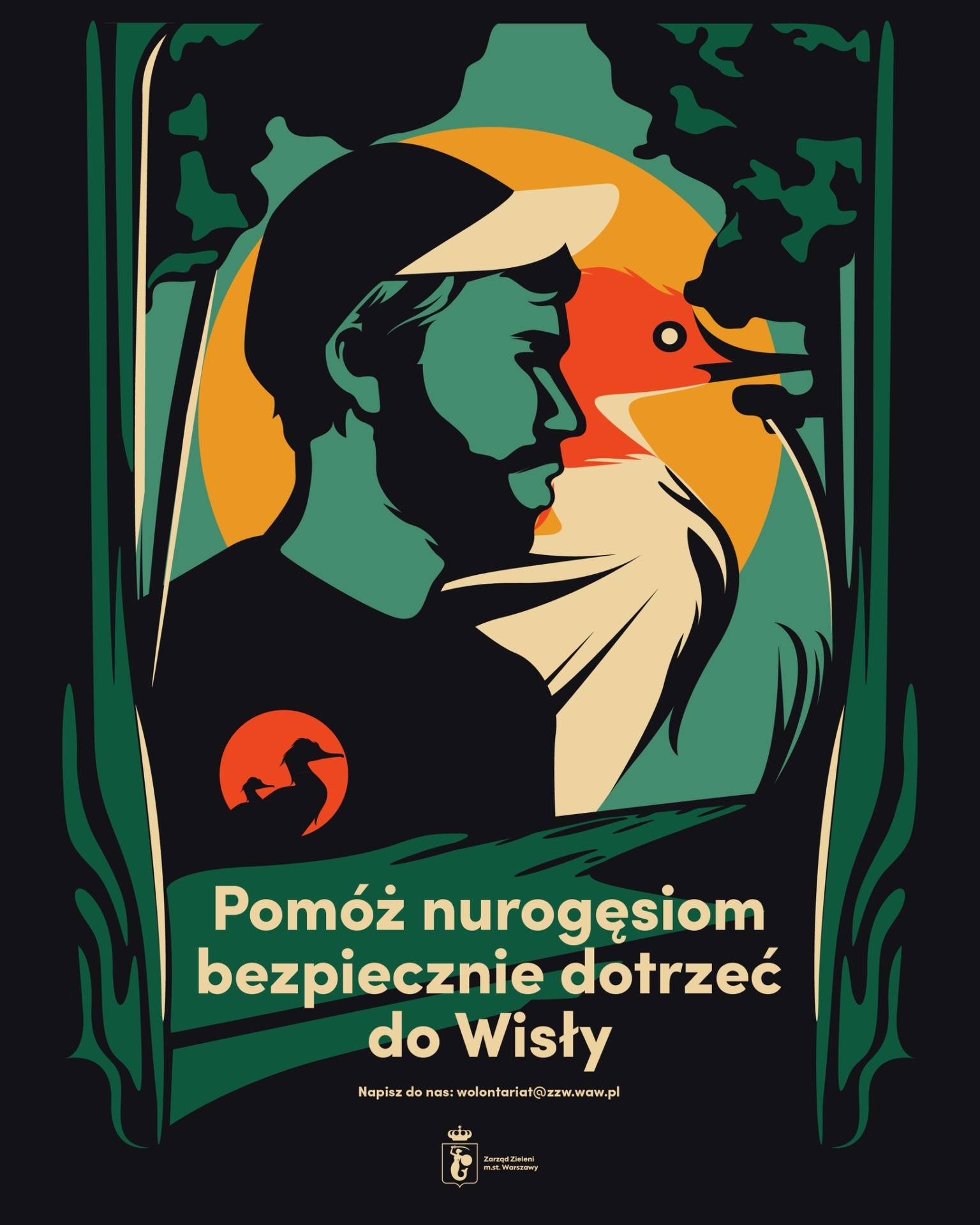 Варшавське управління з зелених насаджень запрошує волонтерів допомагати птахам безпечно перетинати дорогу. Охочі проходять навчання з орнітологом, отримують страховку та світловідбивний жилет, а також подарунок від Олі Ясьоновської — ілюстраторки, яка малює для «зеленбуду» ефектні плакати.