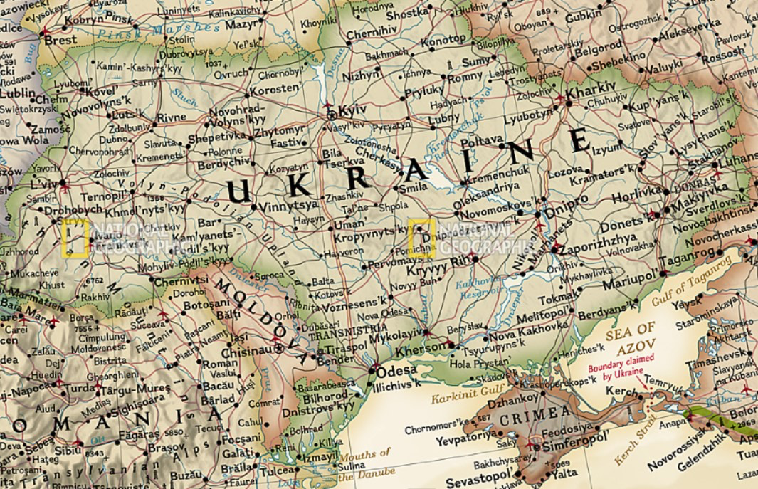 4) Крим зображено нейтральним (ні Росія, ні Україна) або відокремленим від України пунктиром/кордоном без зафарбовування.