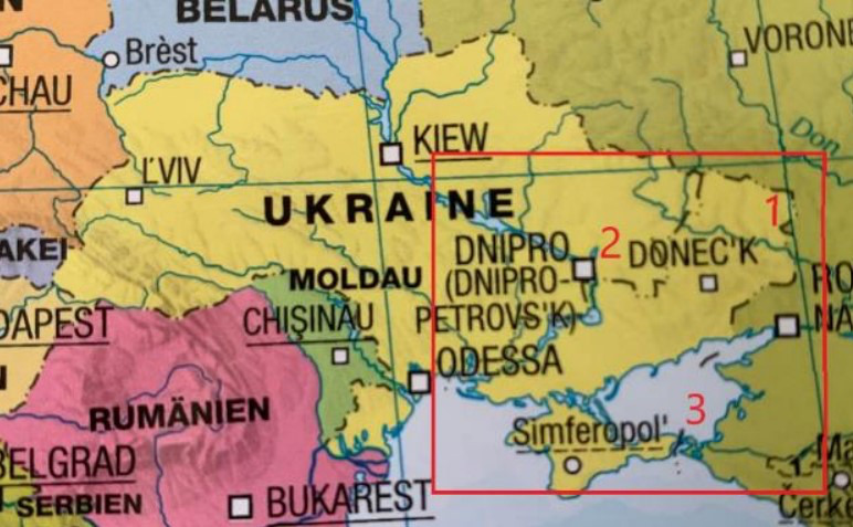 3) Пунктирною лінією відокремлено не тільки Крим, а й частини Донбасу чи областей, на яких РФ провела незаконний псевдореферендум.