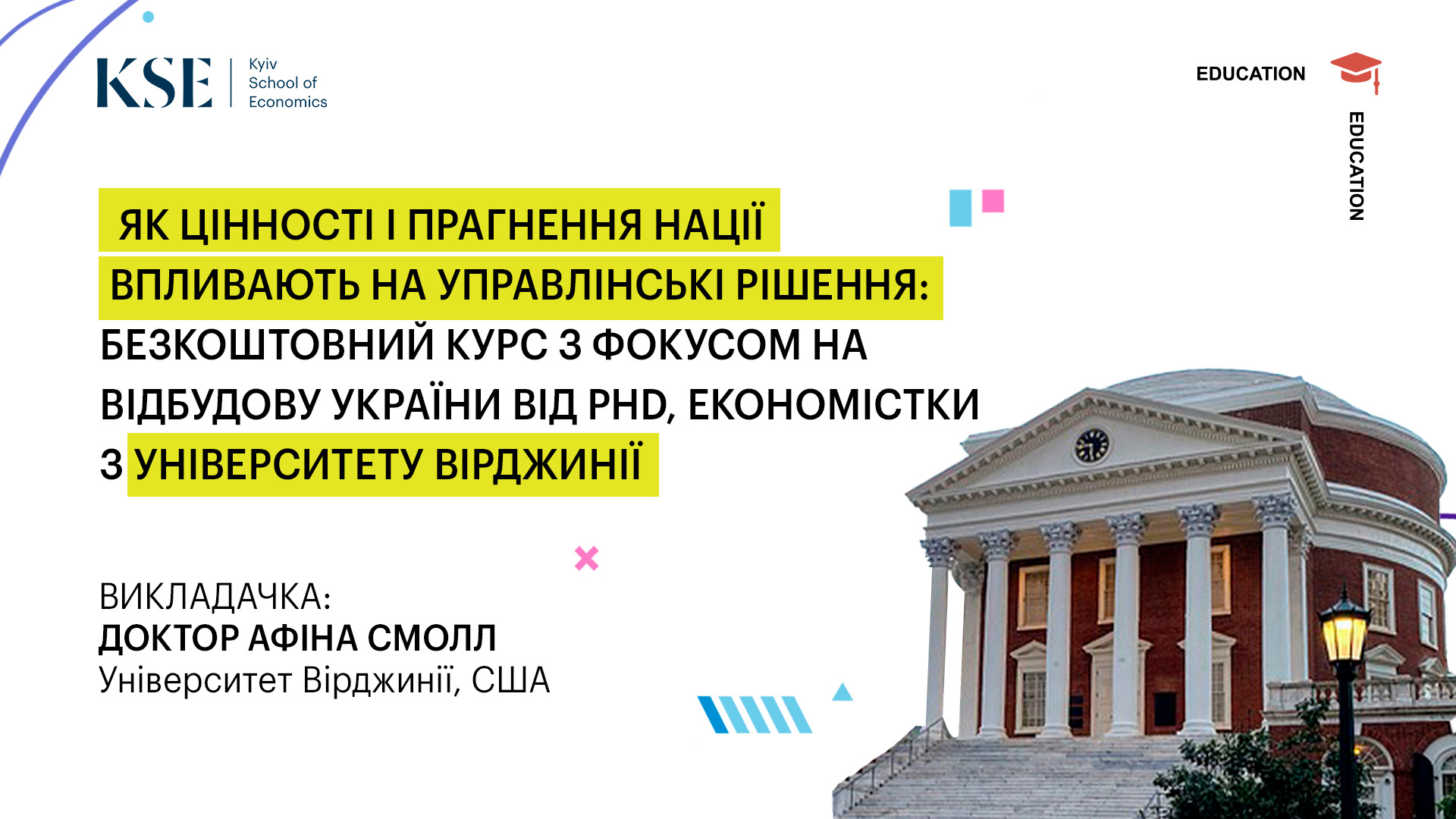 Як цінності і прагнення нації впливають на управлінські рішення? Безкоштовний курс з фокусом на відбудову України від економістки з США в KSE