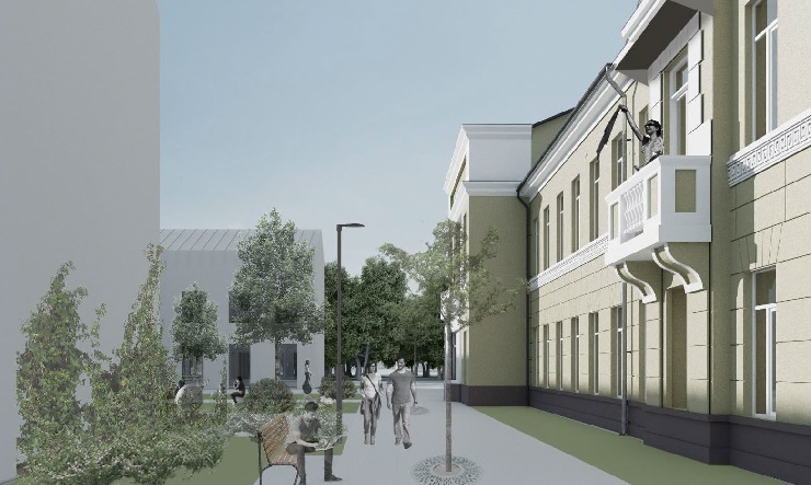 Бюро Archobraz представило проєкт реконструкції гуртожитку для переселенців у Дніпрі. Архітектори пропонують провести реновацію наявної будівлі, звести поруч новий корпус та облаштувати прилеглу територію.