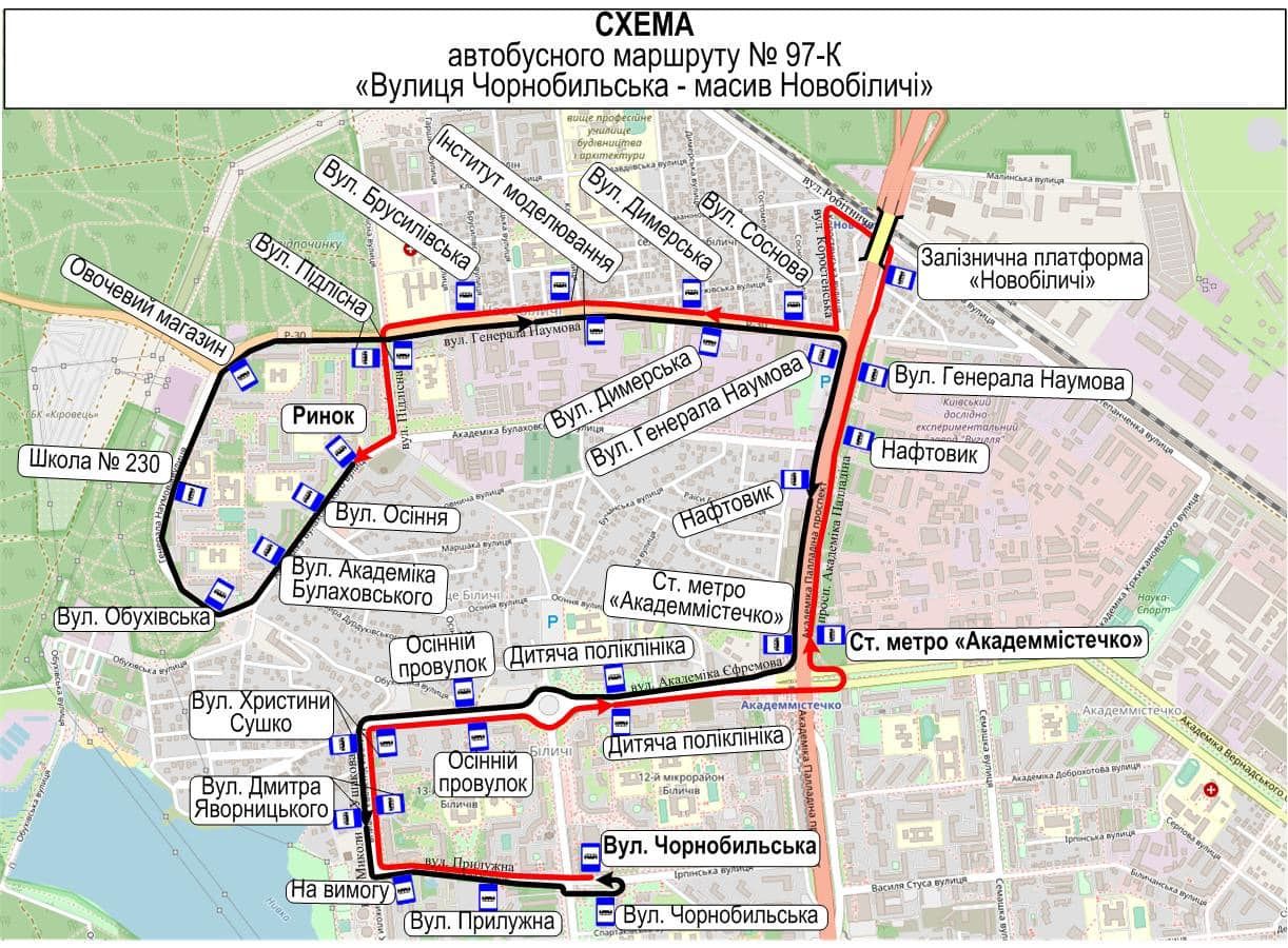 Таким чином, з 20 квітня подовжено тролейбусний маршрут № 36 «Вул. Північна – станція метро «Святошин» до вулиці Чорнобильської. Внесені зміни в шлях слідування автобусного маршруту № 97К «Масив Новобіличі – вул. Академіка Єфремова» – із заїздом на вулиці Миколи Ушакова, Прилужну та Чорнобильську.