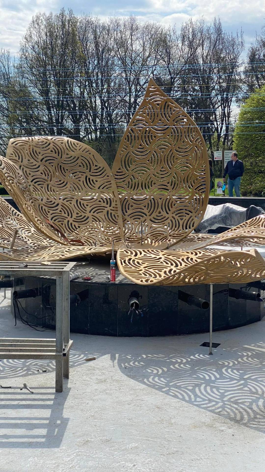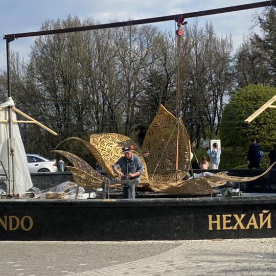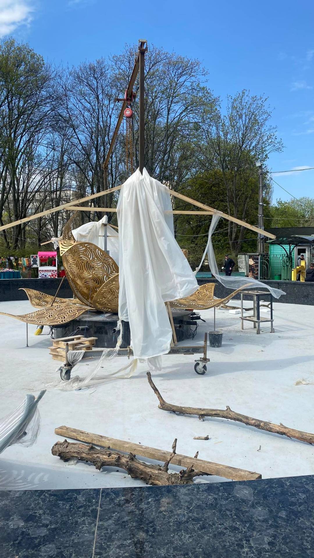 У фонтані в ботсаду Гришка встановлюють скульптуру в золотих пелюстках (фото, оновлено)
