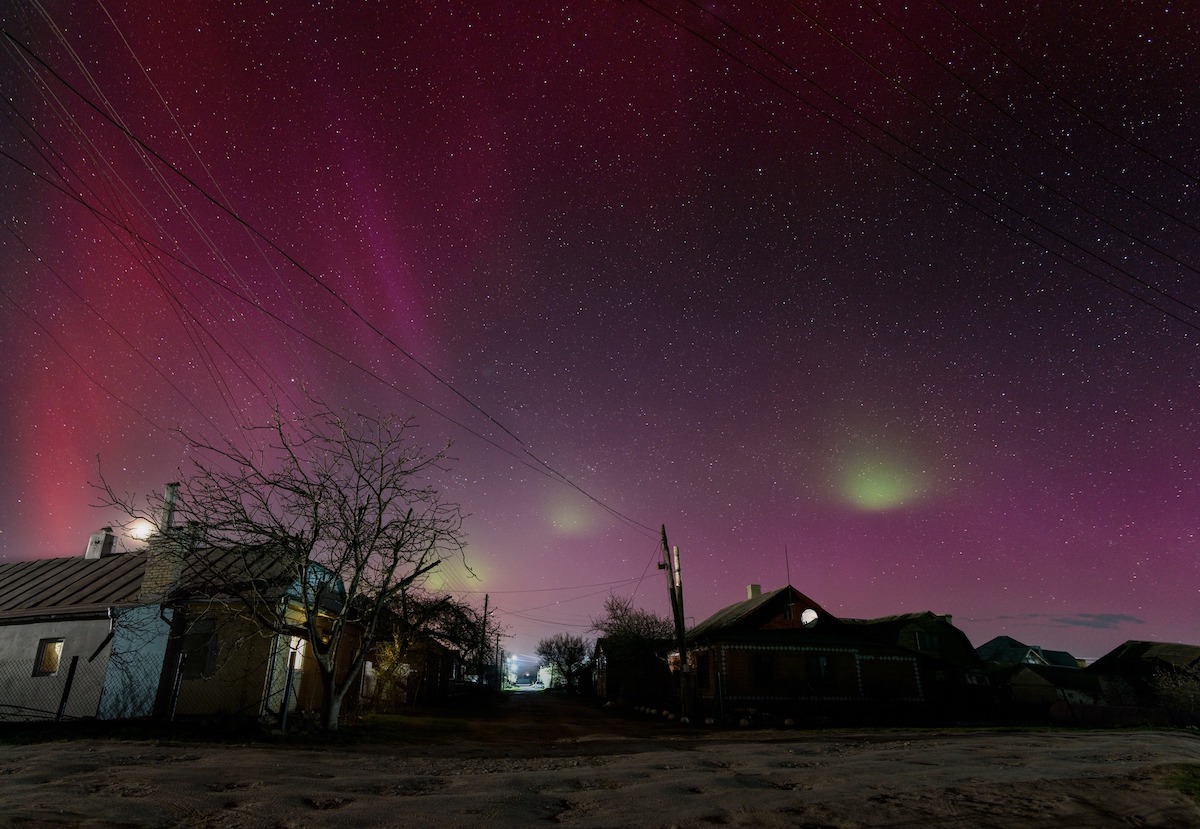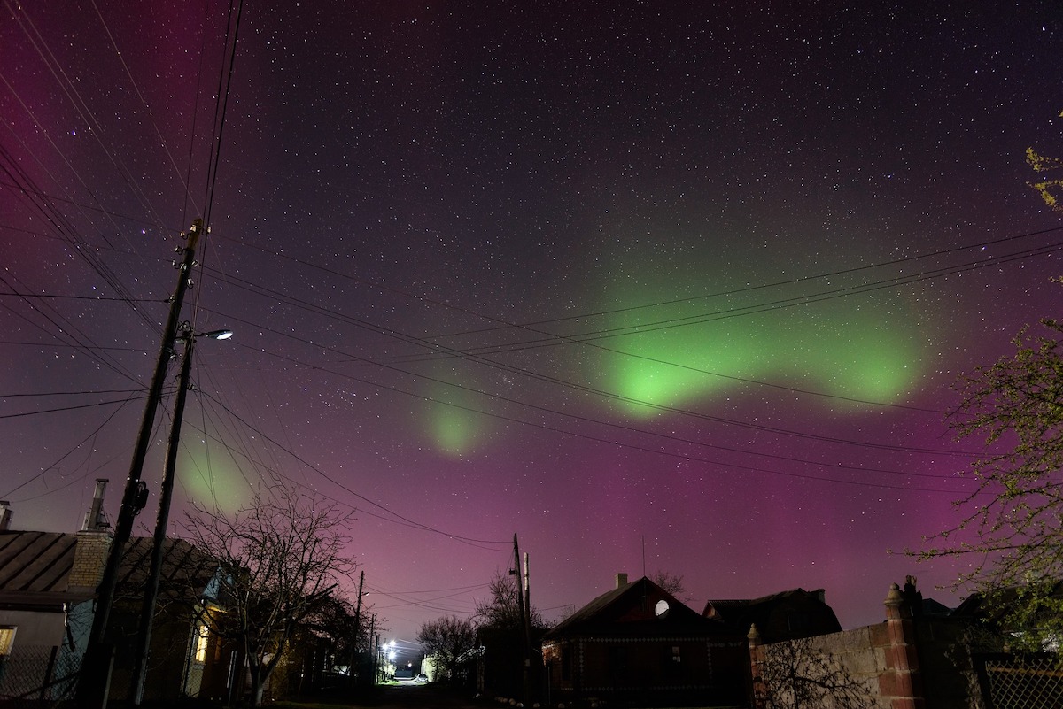 «Червоні кольори — світіння кисню, спільні зелено-червоні — світіння кисню та азоту. Висоти від 100 до 400 кілометрів», — повідомляє Віталій Савченко.