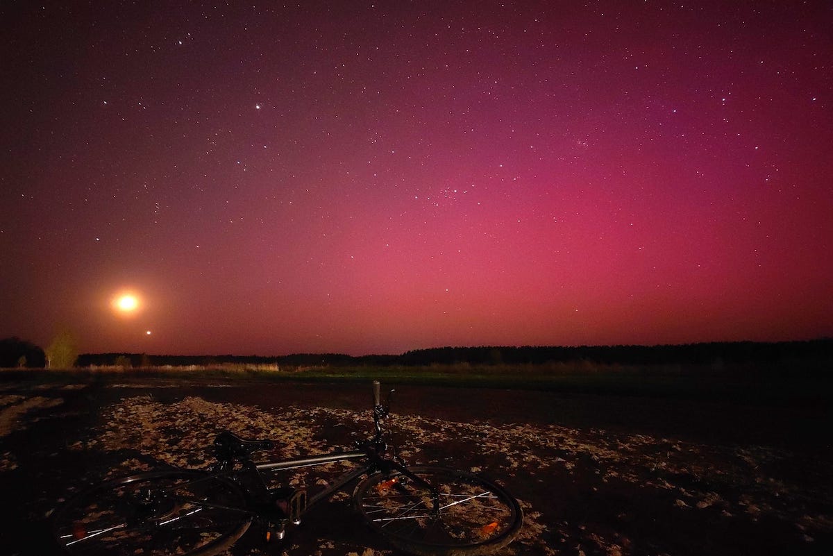 «Прямо зараз над Землею діє жорстка геомагнітна буря G4 (Kp=8), пов’язана з прибуттям викиду корональної маси, що стався на Сонці 21 квітня. Полярне сяйво можна спробувати побачити або сфотографувати на більшій території нашої країни», — пояснює телеграм-канал Небо Сьогодні / Астрономія.
