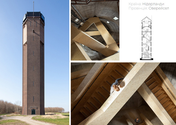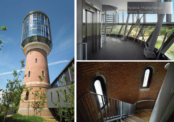 Вежу можна поділити на п’ять рівнів. На останньому поверсі є пропозицію зробити місток між баштою та будинком. Сходи пропонують зробити або гвинтові по периметру, або оглядові прямолінійні. Серед варіантів – встановити скляний інклюзивний ліфт.