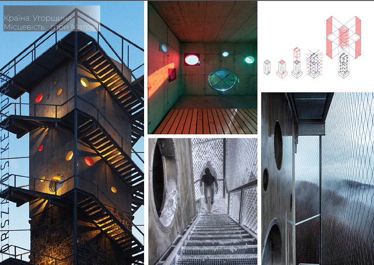 Другий варіант: заклад громадського заучування на першому поверсі для студентів НУБіП є прохідним та загальнодоступним. Над кафе – еколого-освітній центр. Вежа набуває освітньої функції та стає спільним громадським простором.