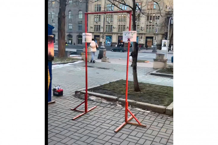 Перехожим пропонують виграти гроші за найсильніший удар по боксерській груші з силоміром або двохвилинне висіння на турніку. За кожну спробу беруть плату.