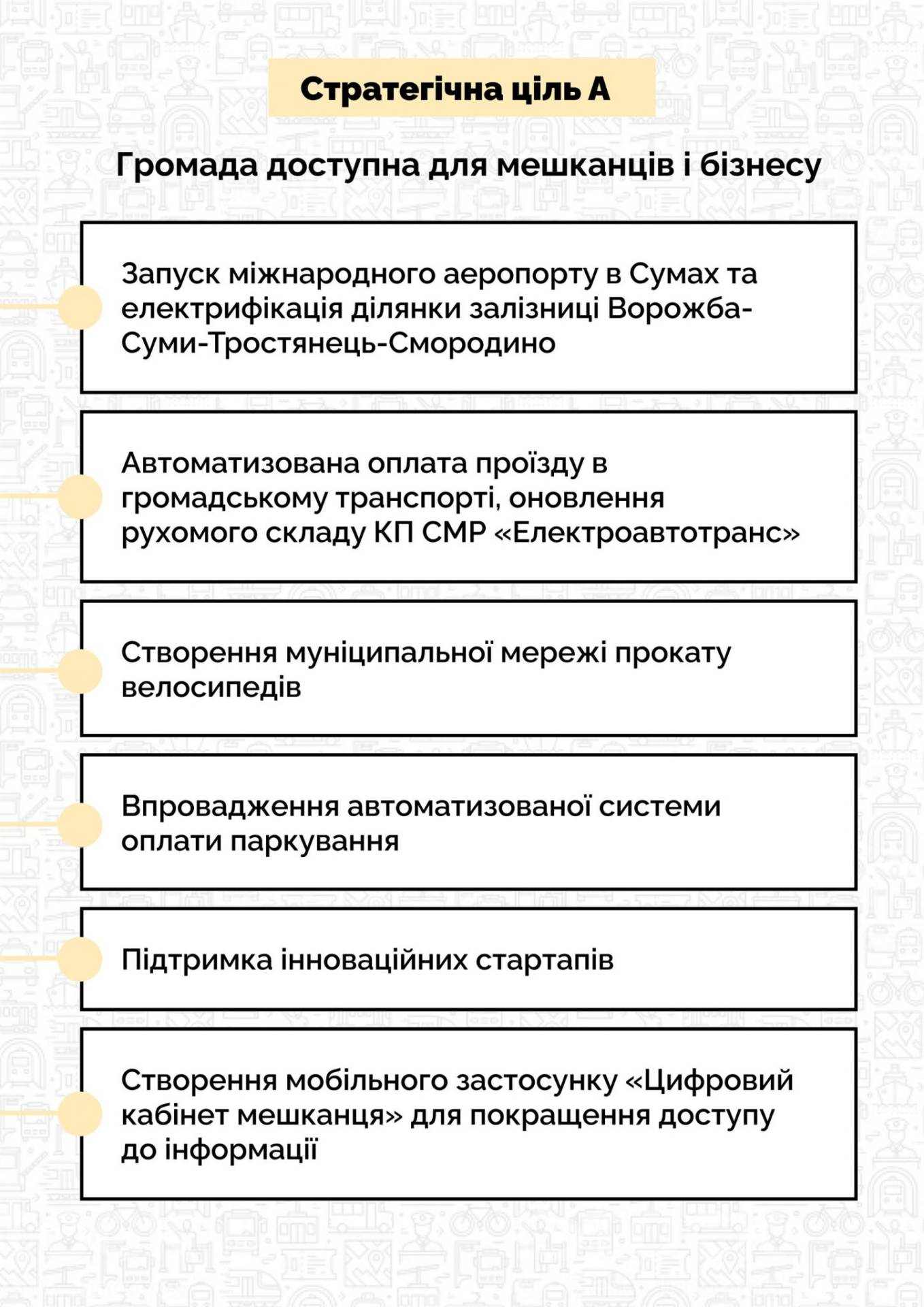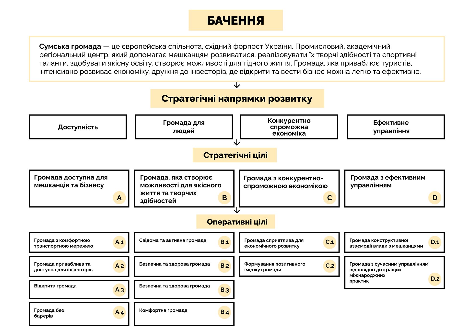 Сумська міськрада представила нову редакцію стратегії громади, яка визначає головні напрями розвитку громади: доступність, якісне життя та розвиток творчості, конкурентоспроможна економіка й ефективне управління. Про це повідомляє онлайн-журнал «Цукр».