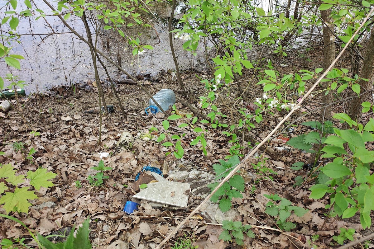 На Жуковому острові не знайти жодної водойми, поверхня якої не рясніла би пластиковим сміттям, повідомляє співробітник НПП «Голосіївський» Олександр Соколенко.