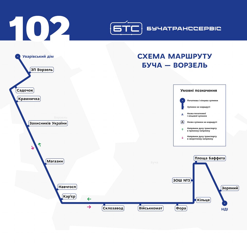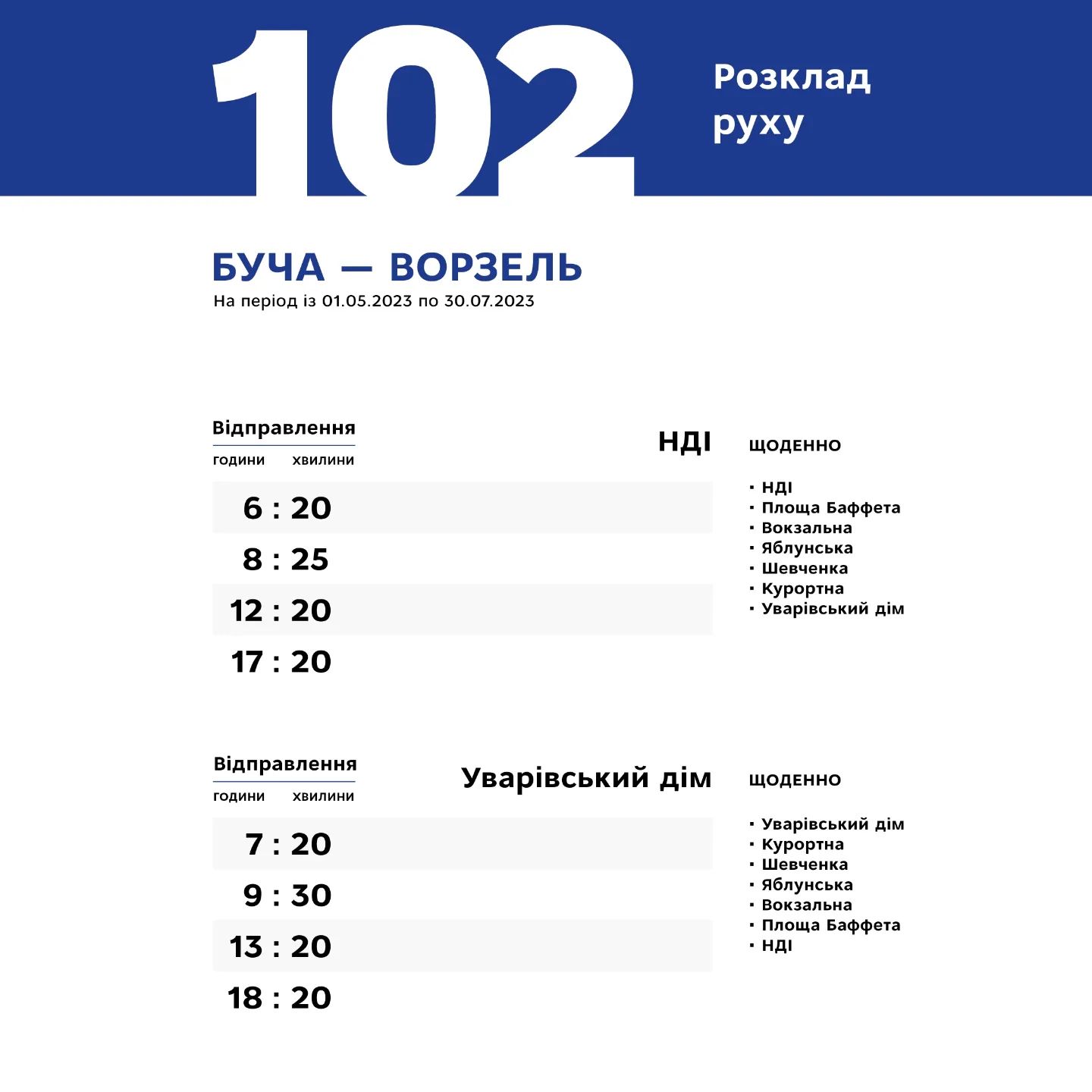 Вартість проїзду на маршрутах 101 і 102 складає 11 гривень по місту (Буча чи Ворзель), 19 гривень з кінця в кінець.