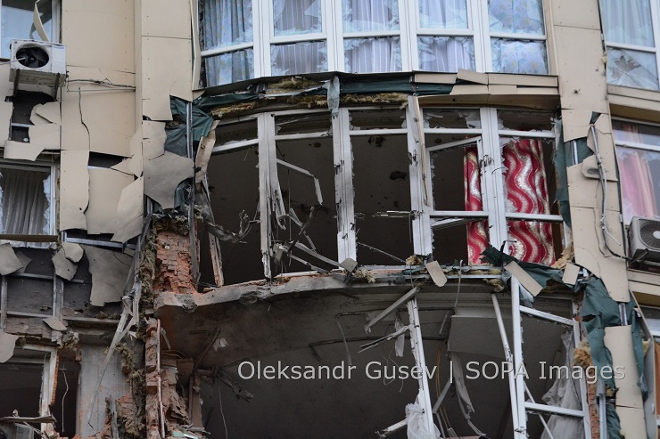 У Святошинському районі столиці через падіння уламків пошкоджено сім авто і ще одне авто горіло. Також зафіксовано падіння уламків на житловий будинок, пошкоджені вікна, фасади та є падіння уламків на проїжджу частину. П’ять людей отримали поранення, їм надали медичну допомогу. В Солом’янському районі пошкоджено резервуар з витоком дизельного палива. На стоянці пошкоджено 15 вантажних та п’ять легкових авто.