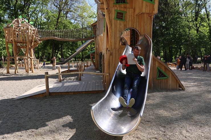Дитячий майданчик «Лис Микита» відкрили наприкінці квітня. Його виготовив німецький виробник за кошти анонімного інвестора. Конструкції зроблені з натурального дерева, для покриття використали дрібну гальку. Першого травня п’ятирічний хлопчик зламав там стегно, впавши з півтораметрової висоти.