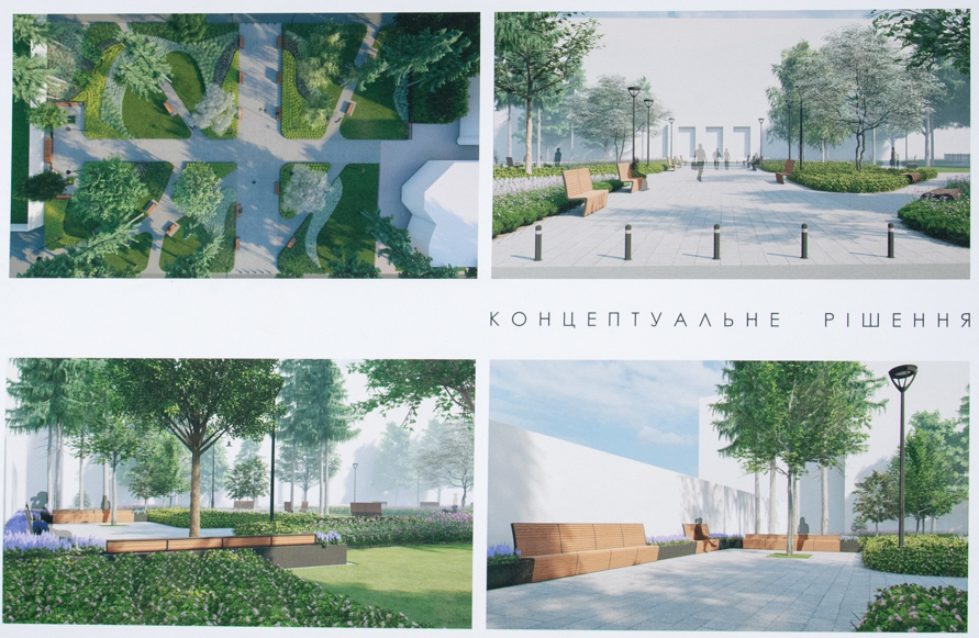 Концептуальне рішення простору на Шулявці можна побачити зараз на світлині інформаційного щита: