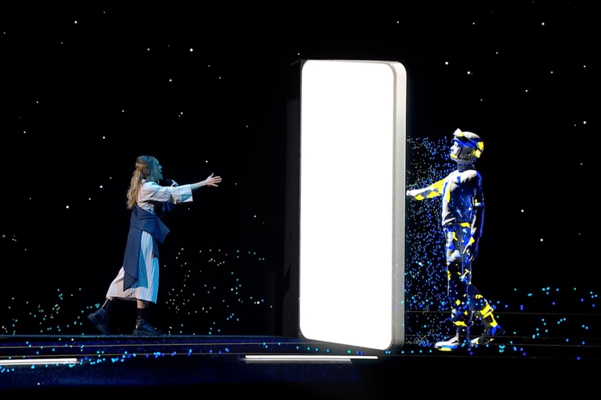 Під час позаконкурсного виступу українки Alyosha лунає запис звуків сирен повітряної тривоги, на сцені розігрується початок війни, прощання з солдатом, на екранах виникає листування з тими, хто евакуювався за кордон.