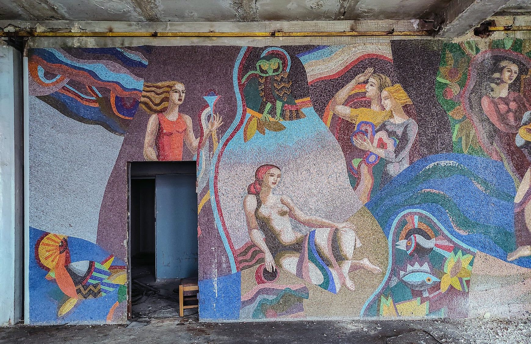 У приміщеннях заводу залишилися вітражі, мозаїки, барельєфи та інше оздоблення.