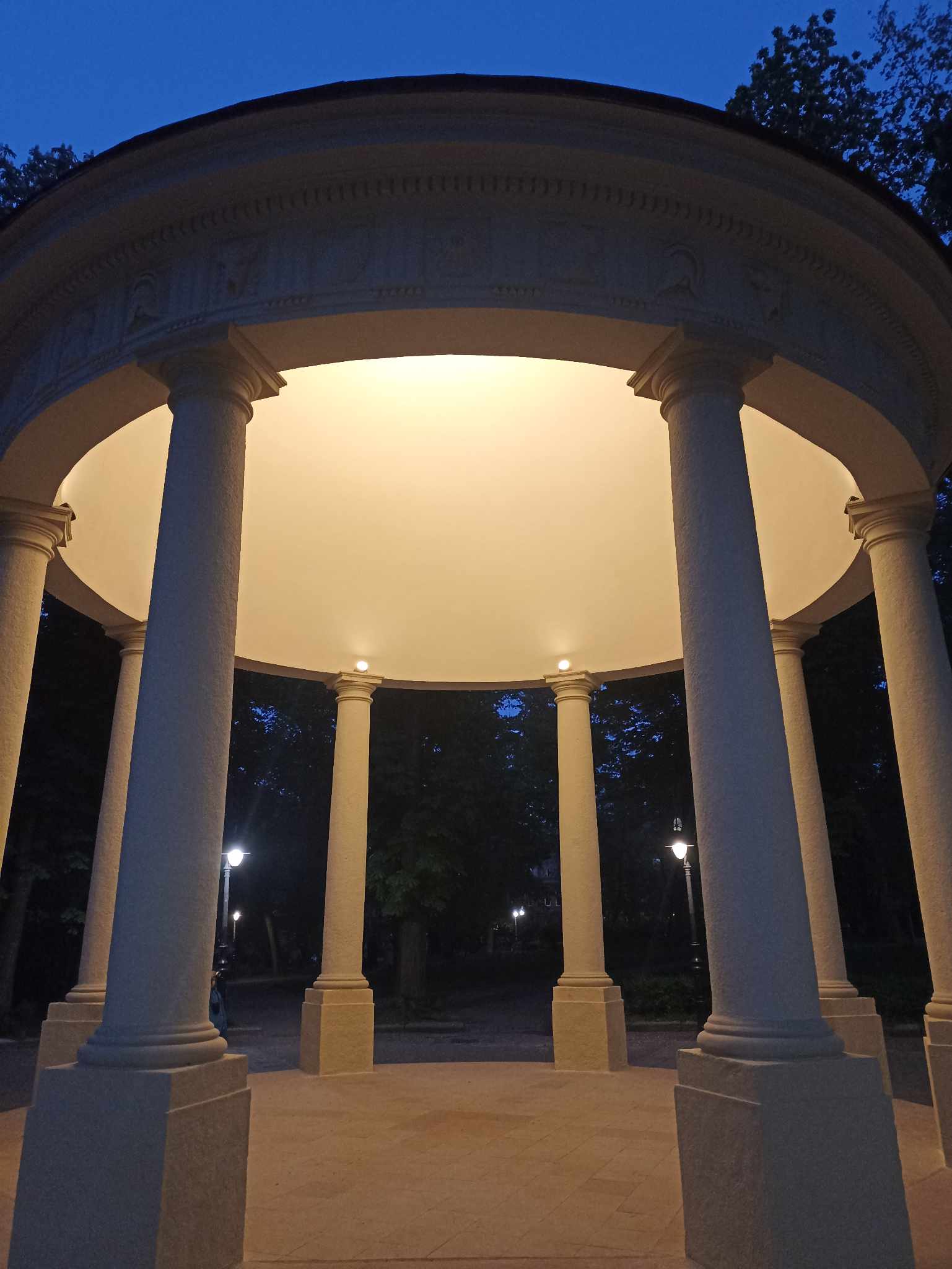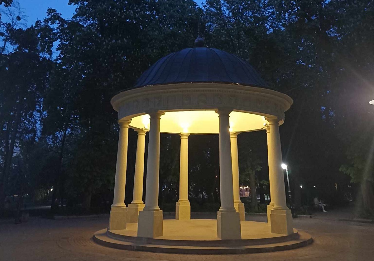 На даху ротонди встановили мідний шпиль заввишки понад два метри. В альтанці вмонтували енергоощадне освітлення. У вечірні час купол підсвічується зсередини – для цього встановили вісім нових світильників зі світлодіодними жарівками.