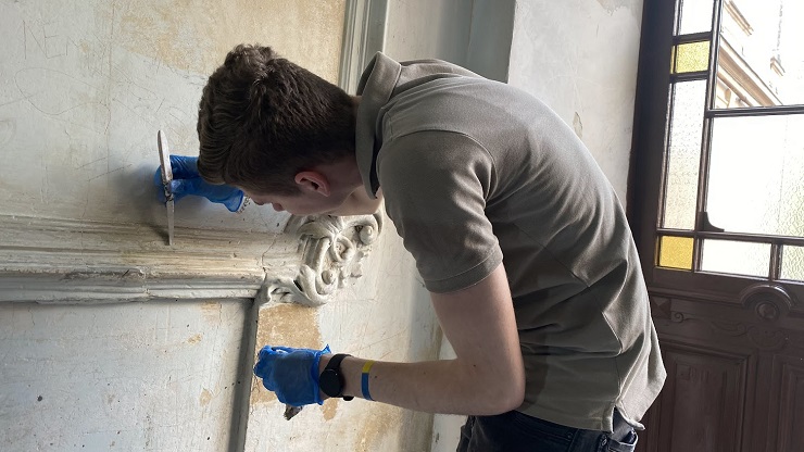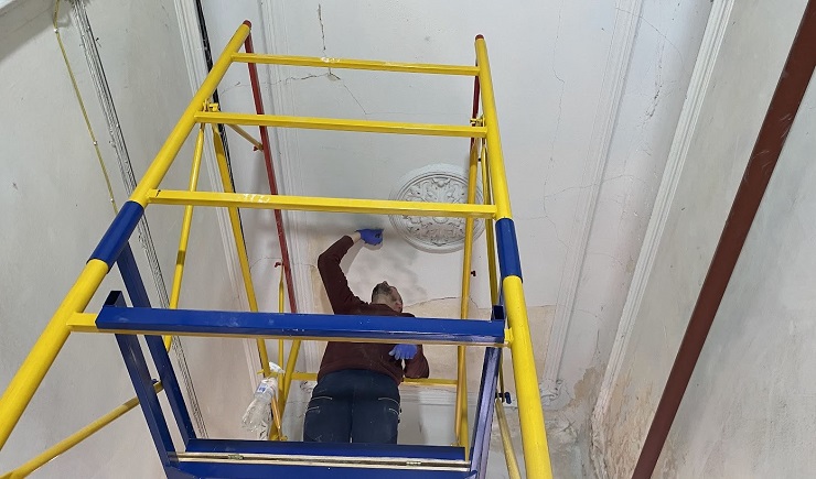 Роботи розпочали з реставрації ліпнини та каменю у вхідній частині під’їзду, на черзі – поліхромні (кольорові) розписи. Допомагає мешканцям краківська реставраційна фірма Revive Konserwacja Zabytków.