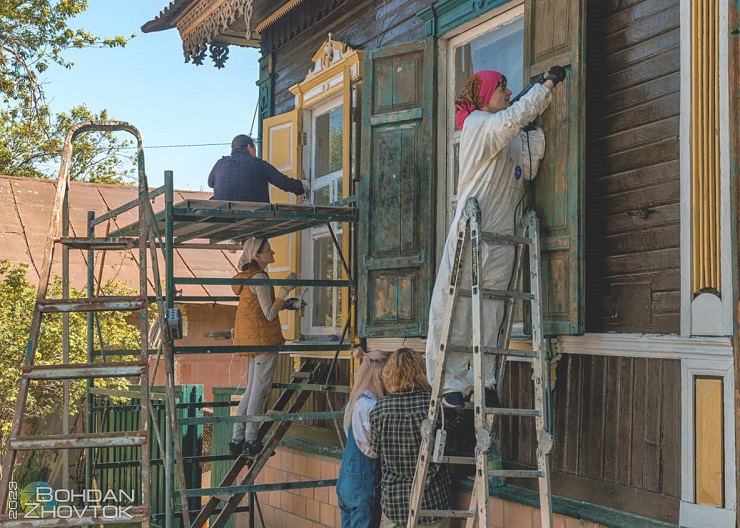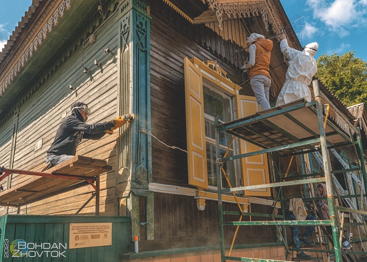 Волонтери організації «Дерев’яне мереживо Чернігова» реставрують будинок XIX століття на вулиці Музейна, 2б.