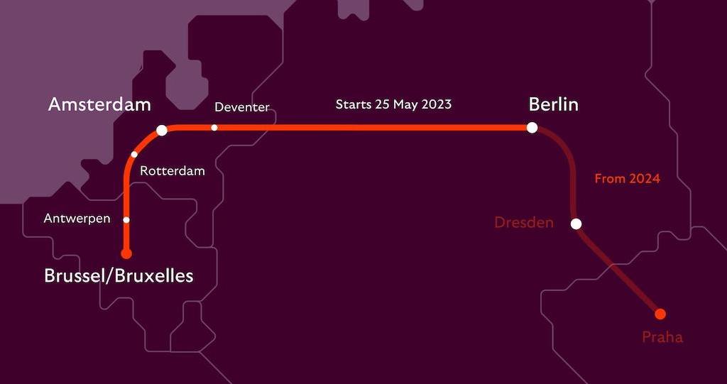 Потяг курсуватиме тричі на тиждень в обидва боки. З Брюсселя він рушає о 19:22 і прибуває до Берліна о 6:48. У зворотному напрямку відправляється з німецької столиці о 22:56 та прибуває до столиці Бельгії о 9:27. Поїзд зупиняється в Амстердамі та Роттердамі.