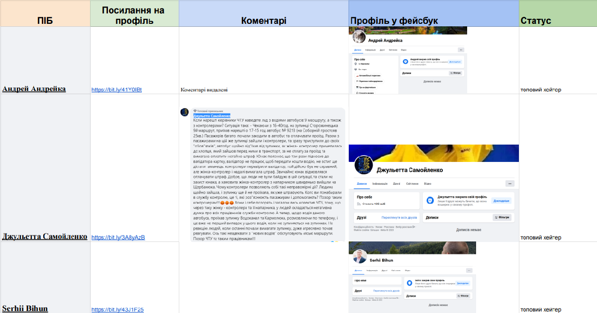 У цьому розділі висвітлюється актуальна інформація про основних хейтерів підприємства, які допомагають нам ставати кращими, пояснює комунальне підприємство. У файлі на сайті управління є посилання на профілі критиканів в Facebook та скріни коментарів. Деякі мають позначку «топовий хейтер».