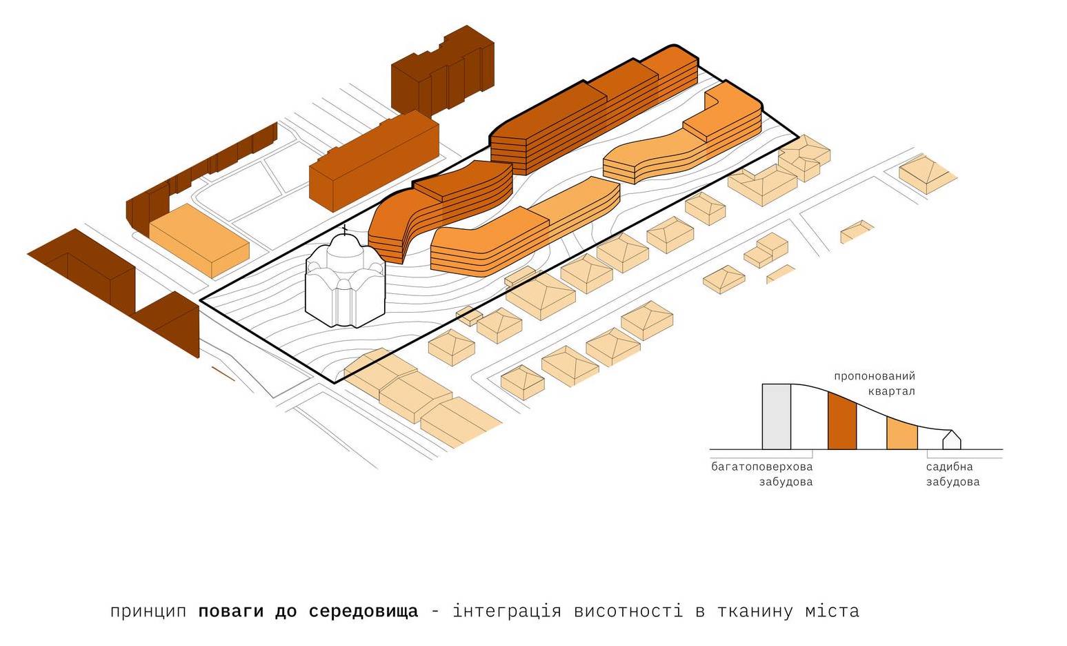 Проєкт житлового кварталу з собором від Aranchii Architects переміг на конкурсі в Рівному