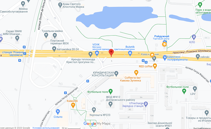 Укриття в будівлі ЖЕДу на проспекті Романа Шухевича, 4-А. Поряд жодного іншого укриття. Скрін з мапи