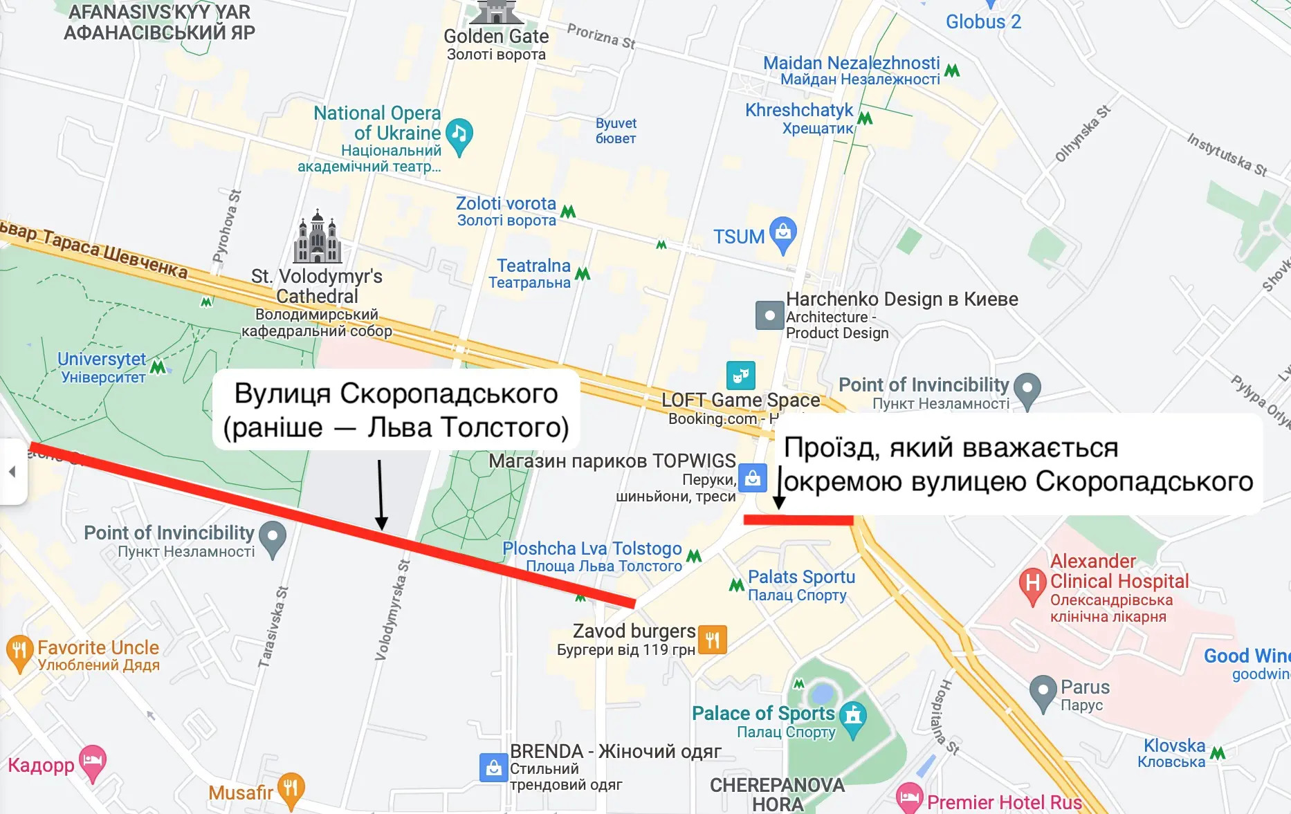 Однак днями міський голова Віталій Кличко зареєстрував проєкт рішення Київради про перейменування вулиці Павла Скоропадського у Печерському районі на вулицю Омельченка.