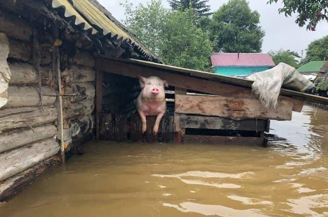 На опублікованих відео видно, що дикі тварини йдуть до міста, рятуючись від води.