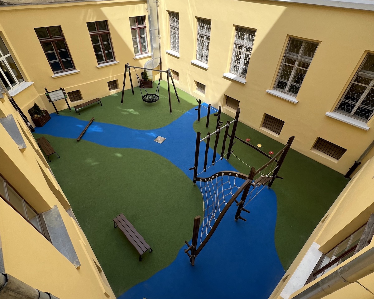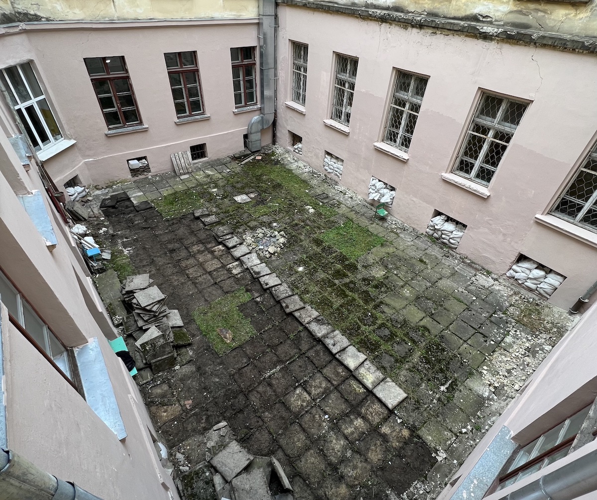 Реконструкція занедбаного дворика тривала три місяці. Оскільки доступу будівельної техніки до внутрішнього простору не було, всі роботи виконувались майже вручну.