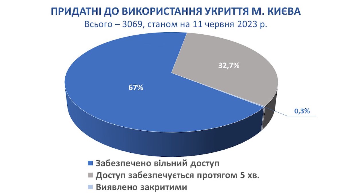 До 67% укриттів можна потрапити відразу, до 32,7% — протягом п’яти хвилин, і лише 0,3% комісія виявила зачиненими. Укриття перевіряли протягом десяти днів спільно з поліцією та ДСНС.