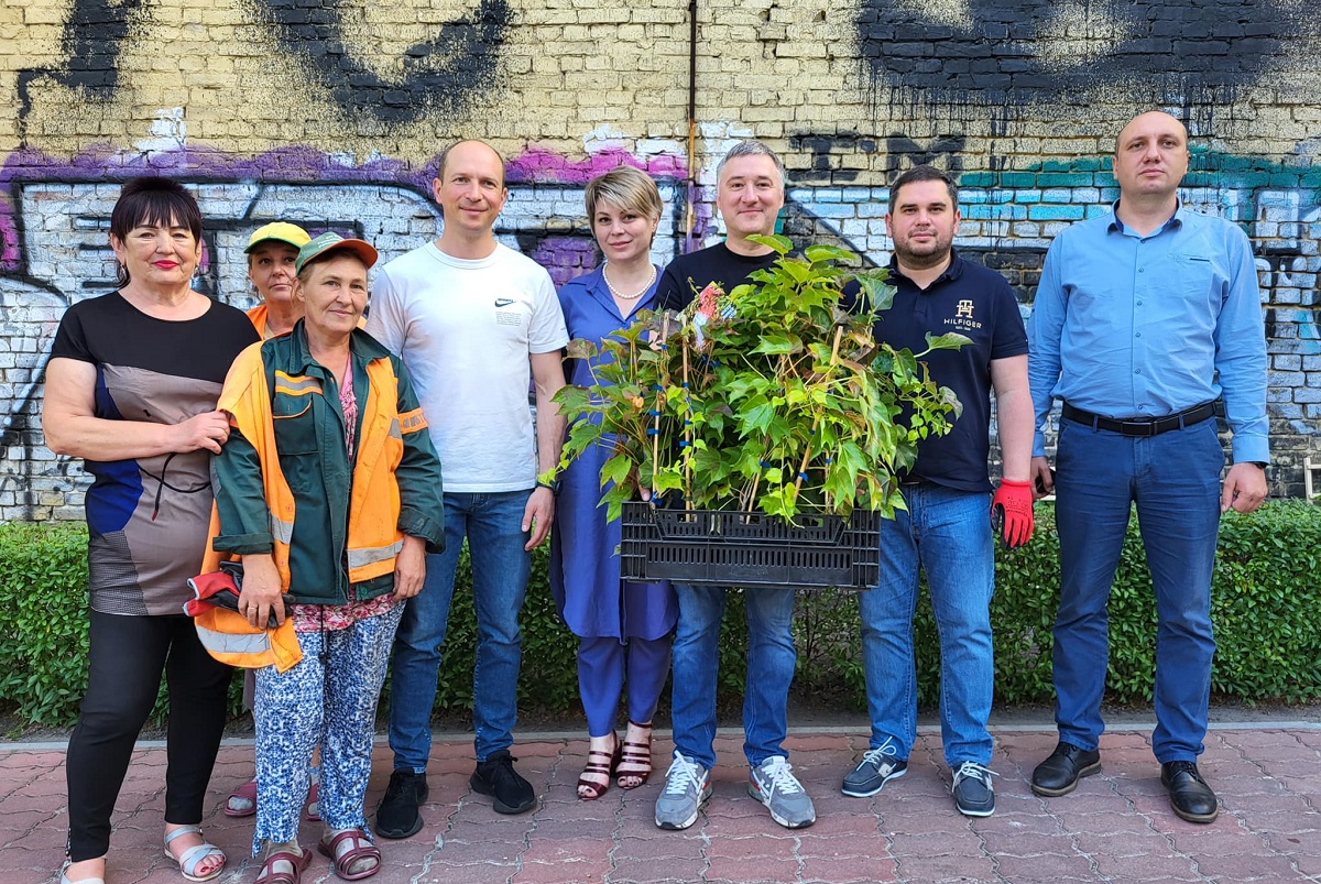 «Голосіївський район долучився до нашої ініціативи з вертикального озеленення — сьогодні висадили першу партію саджанців винограду Вічі в одному з дворів на вул. Тарасівській. Усього біля стін та парканів району вже незабаром буде висаджено 100 паростків цієї чудової рослини», — повідомив Возний.