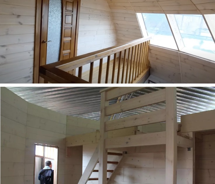 У одному з будинків, який показав автор, є спальня, де розташовується двоспальне ліжко, тумбочки та комод. Меблі теж виготовлені на фабриці з відходів деревини. У ванній встановлені душова кабіна, унітаз, пральна машина, рукомийник та бойлер. На другому поверсі розміщуються дві дитячі кімнати. Такий двоповерховий будинок може бути розрахований на сімʼю з чотирьох людей.