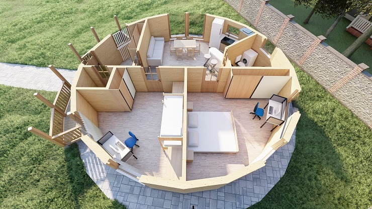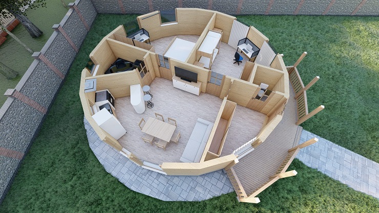 На фабриці SAP виготовляють овальні будинки з цілісної деревини або з клеєного бруса. Вони можуть бути площею від 31 квадратного до 84. При збільшенні площі зазвичай конструктори збільшують діаметр, а всі сегменти лишають однаковими.