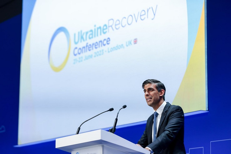 Велика Британія анонсувала «знаковий» пакет фінансової допомоги для України, який включатиме 3 млрд доларів кредитних гарантій для Світового банку та понад 300 млн доларів двосторонньої допомоги, оголосив на Конференції британський премʼєр Ріші Сунак.