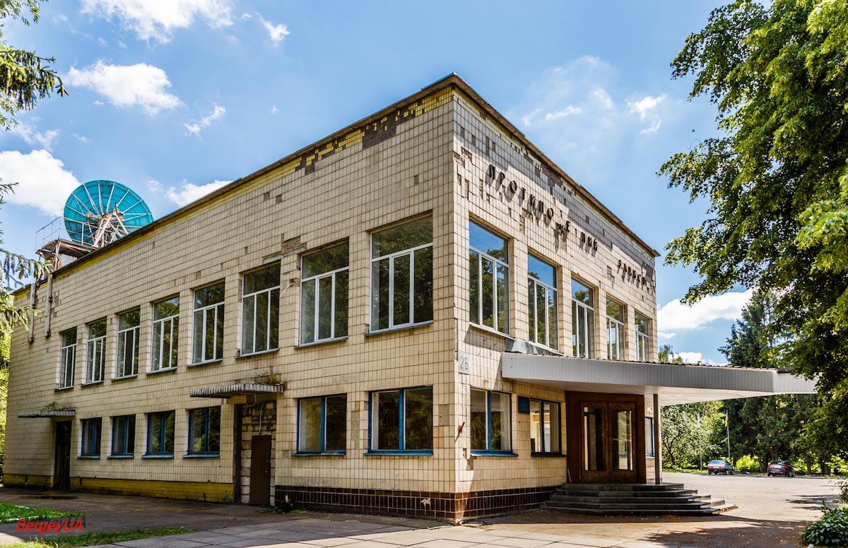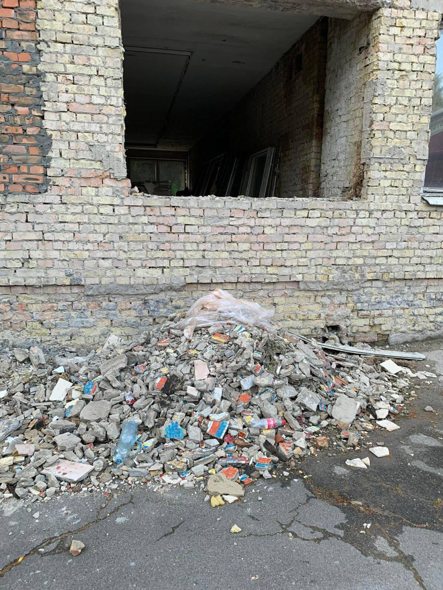 У будівлі пожежної частини №26, розташованій на території Виставкового центру, знищено мозаїку. Фото опублікував Дмитро Соловйов.