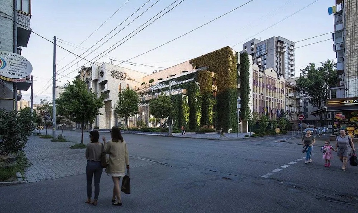 Оголошення проілюстрували не лише реальними фото будинку та візуалізаціями проєкту забудовника, але й рендерами альтернативного проєкту реконструкції. На цих рендерах показано, зокрема, виноград, який зрізав забудовник.