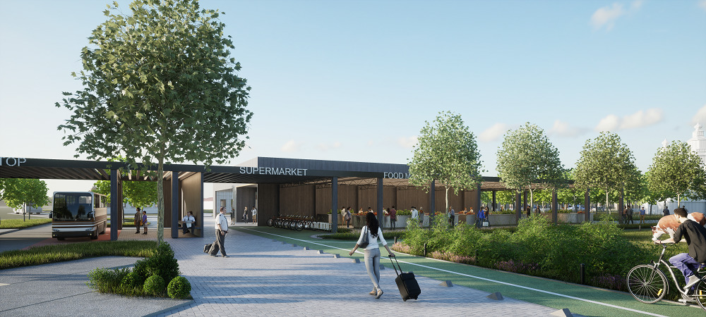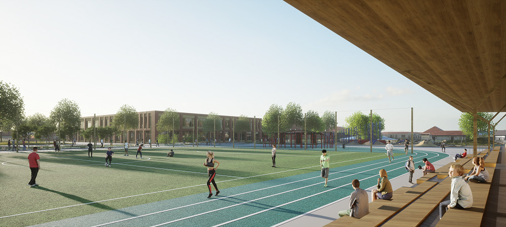 Проєктом більшість громадських сервісів об’єднано в єдиний комплекс, щоб уникнути дублювання функцій і, відповідно, знизити вартість експлуатації. Наприклад, школа і дитячий садок матимуть спільний харчоблок, а актовий і спортивний зали можуть використовуватись як школою, так і культурним центром.