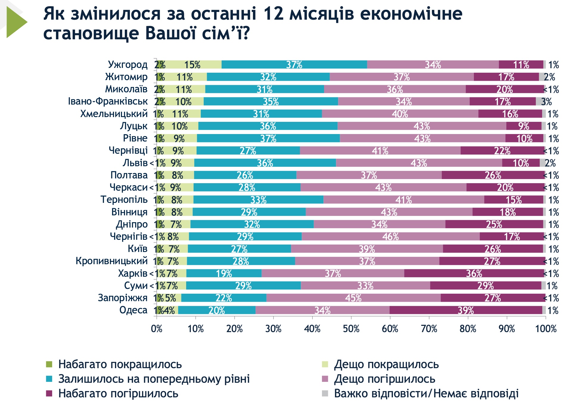 Водночас у більшості опитаних економічне становище погіршилося за останній рік.