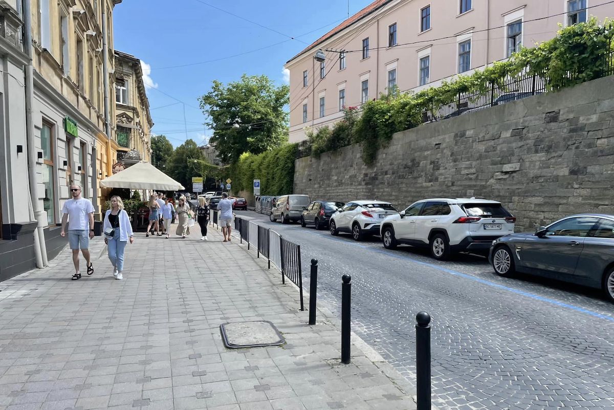 У Львові стандартно застосовується чорно-біле огородження, яке почали встановлювати на вулицях у 1970-х роках.