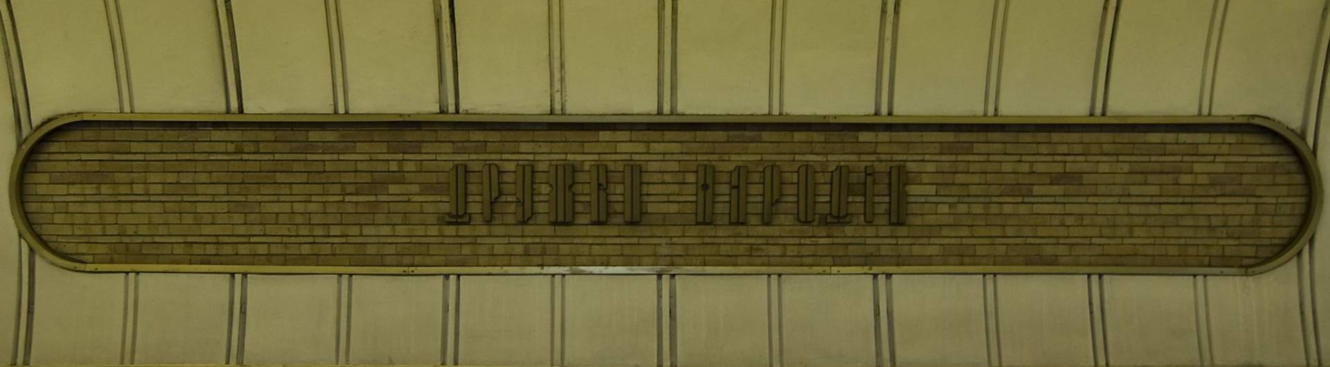Архітектори станцій «Площа Льва Толстого» Вадим Жежерін та «Дружби народів» Микола Альошкін і Анатолій Крушинський обрали шрифт для написів нових назв. Ці станції перейменували на «Площу Українських Героїв» та «Звіринецьку».