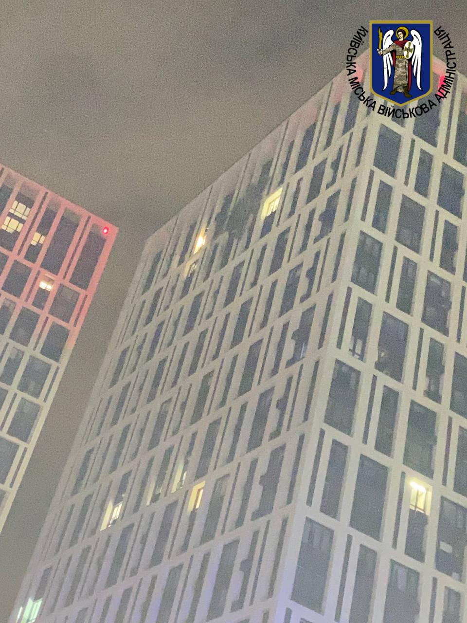 На останньому поверсі 25-поверхівки в Дарницькому районі осколкові поранення дістали 19-річна дівчина та 23-річний чоловік, їх шпиталізували. Суспільне уточнює, що чоловік і дівчина перебували в різних будинках.