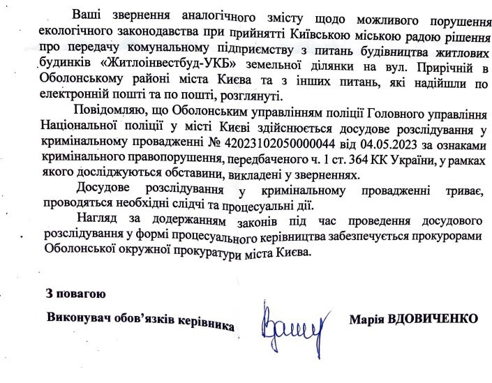 За фактом сумнівної передачі ділянки на Прирічній під муніципальний паркінг відкрито кримінальну справу, пишуть в спільноті «Парк Прирічна» у Facebook.