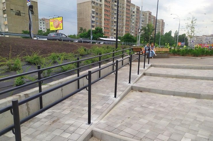 Біля виходу з метро облаштували перголу, на ділянці встановили 27 опор освітлення. Також там влаштували поливо-зрошувальну систему.