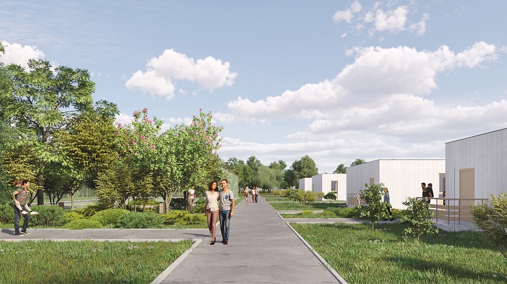 Проєкт у Луцьку – це перша приватна ініціатива, спрямована на швидке, ефективне та відповідальне надання тимчасового житла. Містечко розташоване у селі Жидичин, на околицях Луцька (15 хвилин до центру міста на авто) на березі річки з чудовим пейзажем та доступом до води. Житло передбачене для 456 людей.