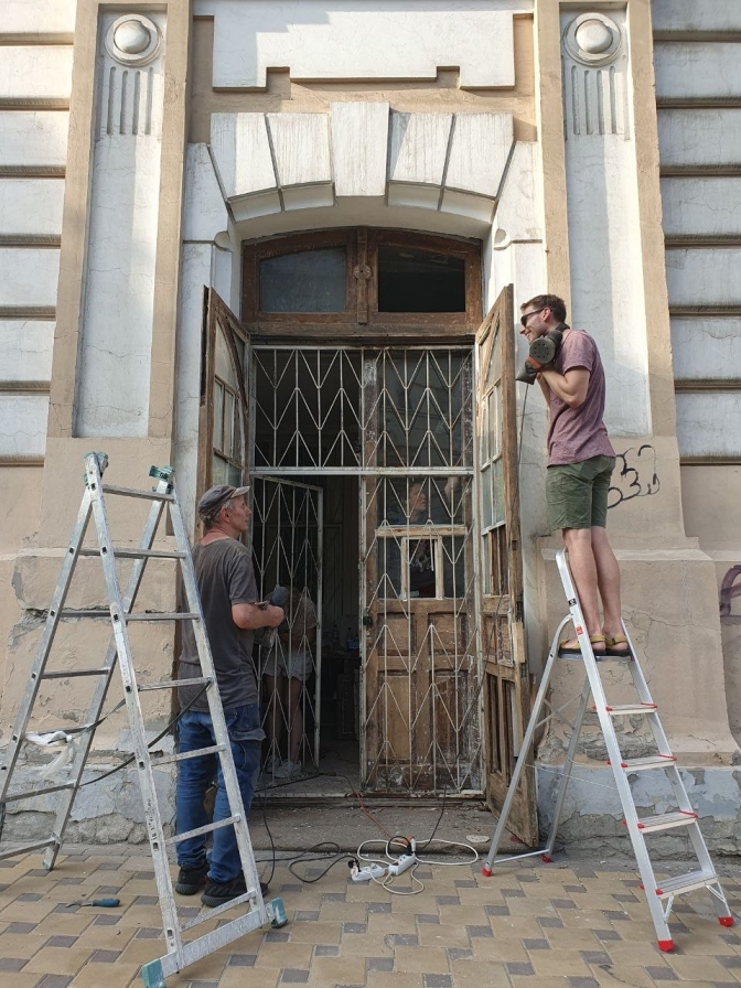 Активісти ГО «Справжній Київ» почали реставрувати старовинні двері – вхідні у хімічний факультет.